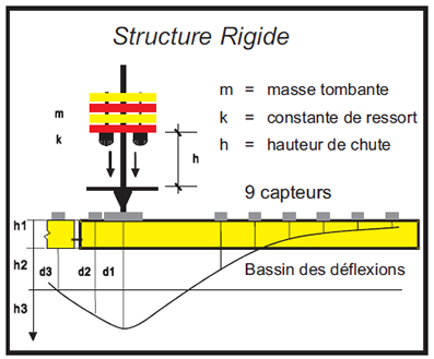 Le FWD simule le passage d’un poids lourds, circulant à 70 km/h et enregistre la déformée induite